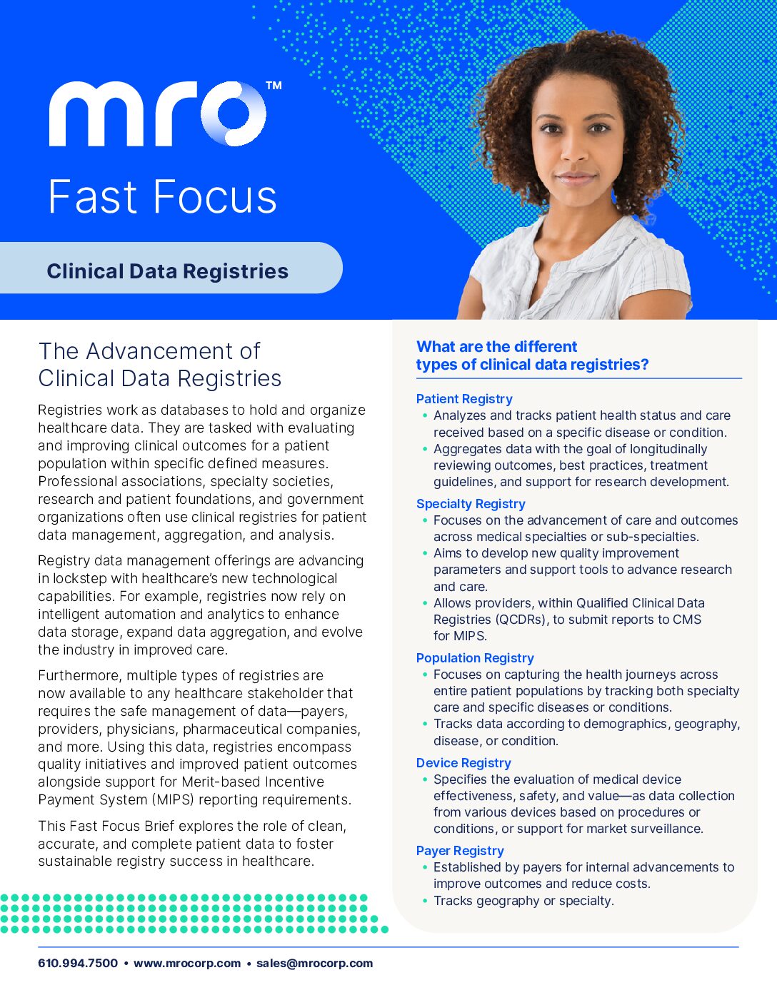 Read the full “Fast Focus: Clinical Registries and the Compilation of Databases” below to explore the role of clean, accurate, and complete patient data in fostering sustainable registry success in healthcare.